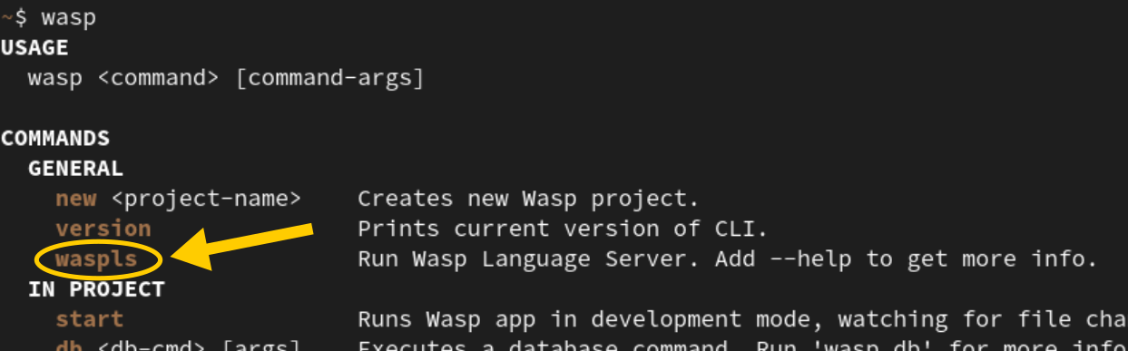 If we would call Wasp Language Server (WLS) the “backend”, then VSCode Wasp language extension would be “frontend” → it takes care of everything to ensure you have a nice experience working with Wasp in VSCode, while delegating the hardest work to the WLS.