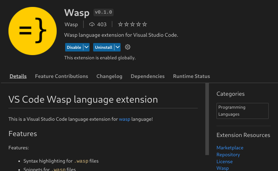 So far Wasp didn’t have much beyond basic syntax highlighting in VSCode, but now it has: